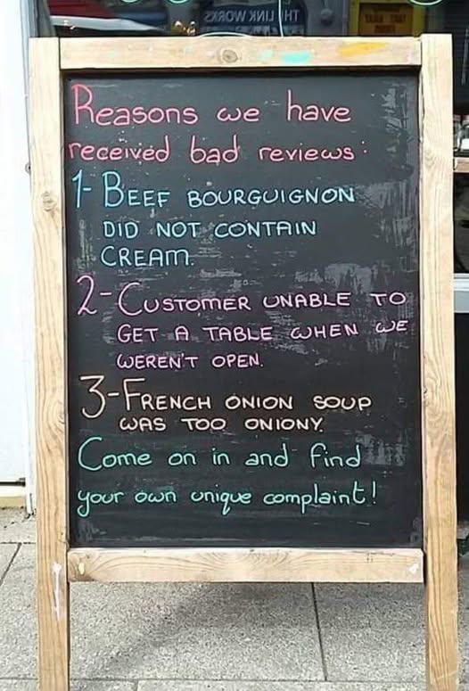 This sign from a cheeky little café made us laugh — and also made us think. Sometimes, the most engaging content isn’t a polished campaign or a heartfelt story. Sometimes it’s a handwritten chalkboard pointing out that someone once complained about French onion soup being “too